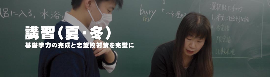 みすずの講習では、基礎を固めるための激勉講座や、教科別・志望校別の対策に絞りこんだ講座を数多く設置しています。中学の復習レベルの基礎講座から、東大クラスの難関大対策まで、自分の学習状況や志望校に合わせ、教科ごとに最適の講座を受講することができます。