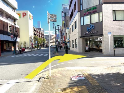 - 2ビックカメラの前を 通り過ぎたら右折します。