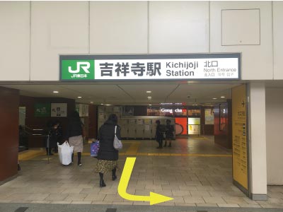 • 1吉祥寺駅北口を出て 左に曲がります。