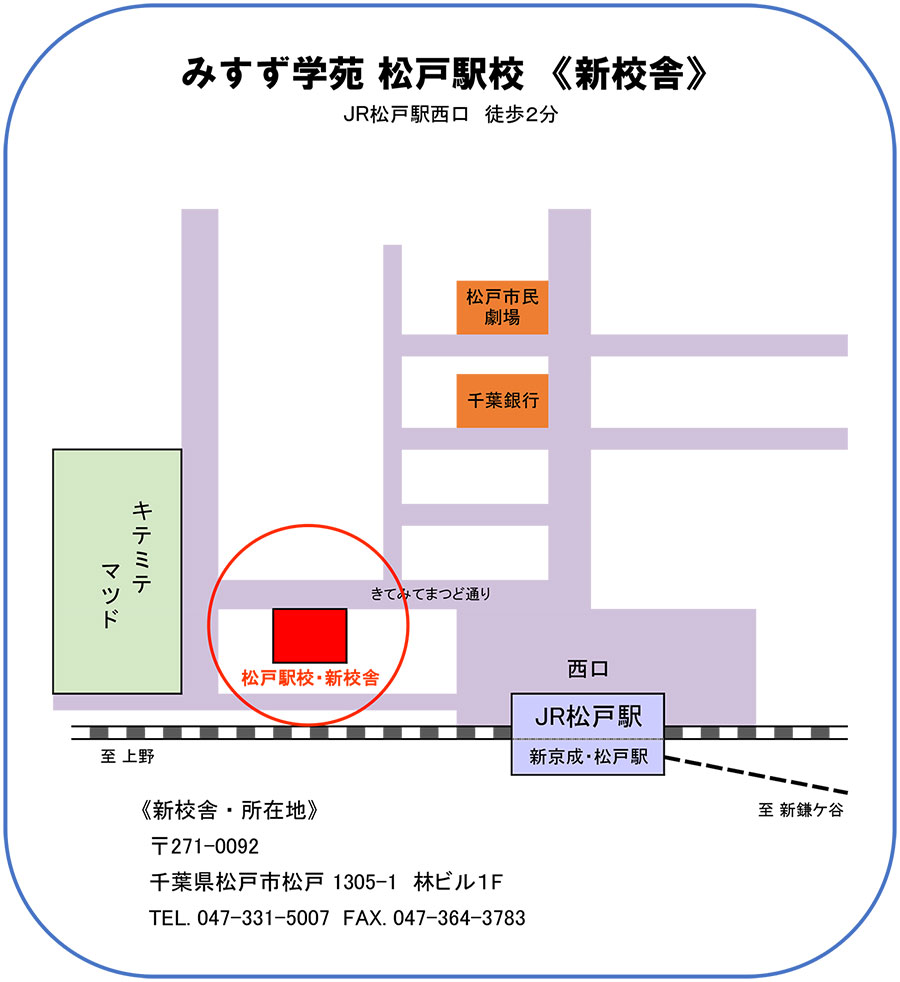 JR 常磐線/新京成線 松戸駅 西口から徒歩2 分、松戸市本町の受験予備校。