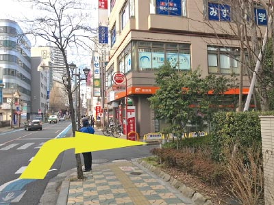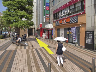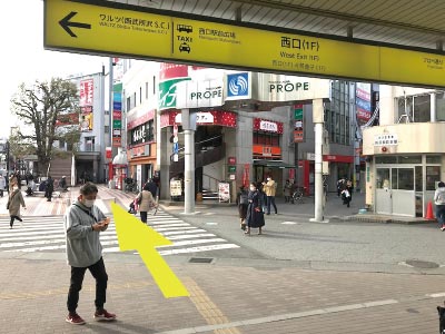 • 1西口 (1F) の出口を出て 矢印の方向へ直進します。