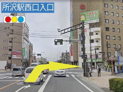 • 3所沢駅西口入口の信号を右折します。