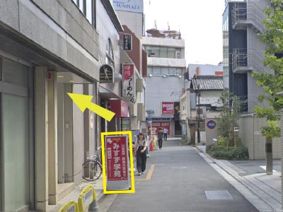 所沢駅から歩いてわずか2分!通いやすいから、授業の無い日でも、学校帰りに自習に来る人がたくさんいます。所沢駅の西口ロータリーの右側に沿って歩いてください。信号のある交差点を右に曲がって、少し歩くと、右前方に「みすず学苑」の大きな文字が見えますよ!このビルの4階が受付です。エレベーターでお上がりください(^-^)。